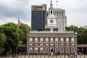 นำท่านเมืองฟิลาเดลเฟีย มลรัฐเพนซิลวาเนีย ซึ่งเป็นเมืองที่ริเริ่มการประกาศอิสรภาพในสมัยก่อตั้ง