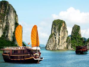 บริการอาหารเช้า ณ ห้องอาหารของโรงแรม นำท่านออกเดินทางสู่ท่าเรือเพื่อล่องเรือชมความงามตามธรรมชาติที่สรรค์สร้างด้วยความงดงาม ดังภาพวาดโดยจิตรกรเอกอ่าวฮาลองประกอบด้วยหมู่เกาะน้อยใหญ่กว่า 1,900 เกาะได้รับการประกาศ เป็นมรดกโลกโดยองค์การยูเนสโกอ่าวแห่งนี้เต็มไปด้วยภูเขาหินปูนมากมายระหว่างการล่องเรือ ท่านจะได้ชมความงามของเกาะต่างๆทั้งเกาะหมาเกาะแมวเกาะไก่ชนฯลฯนำท่านชมถ้ำสวรรค์ ชมหินงอกหินย้อยมากมายล้วนแต่สวยงามและน่าประทับใจยิ่งนักถ้ำแห่งนี้เพิ่งถูกค้นพบเมื่อไม่นานมานี้ ได้มีการประดับแสงสีตามผนังและมุมต่างๆในถ้ำซึ่งบรรยากาศภายในถ้ำท่านจะชมความสวยงาม ตามธรรมชาติที่เสริมเติมแต่งโดยมนุษย์แสงสีที่ลงตัวทำให้เกิดจินตนาการรูปร่างต่างๆมากมายทั้ง รูปมังกรเสาค้ำฟ้าพระพุทธรูปศิวลึงค์ชมแพชาวประมงซึ่งเป็นวิถีชีวิตของชาวฮาลองจะสร้างแพทำ เป็นที่อยู่อาศัยและมีกะชังไว้สำหรับเลี้ยงสัตว์ทะเลเช่นกุ้งหอยปูปลาท่านสามารถเลือกซื้ออาหารทะเลสดๆ จากที่นี่ได้นำท่านชมเกาะไก่จูบกันซึ่งถือว่าเป็นสัญลักษณ์ของอ่าวฮาลองลักษณะจะเป็นเกาะเล็กๆ 2 เกาะหันหน้าเข้าหากันคล้ายๆกับไก่หรือนกแล้วแต่จินตนาการของแต่ละท่าน