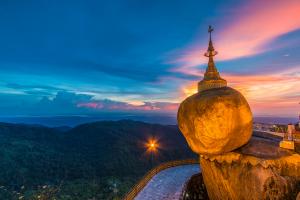 นำท่านเดินทางต่อสู่ เมืองไจ้โท แห่งรัฐมอญระหว่างทางท่านจะได้พบกับสะพานเหล็กที่ข้ามผ่านชมแม่น้ำสะโตงสถานที่สำคัญทางประวัติศาสตร์ ซึ่งในอดีตขณะที่2 สมเด็จพระนเรศวรกำลังรวบรวมคนไทยกลับอโยธยา ได้ถูกทหารพม่าไล่ตามซึ่งนำทัพโดยสุรกรรมาเป็นกองหน้าพระมหาอุปราชาเป็นกองหลวง ยกติดตามกองทัพไทยมากองหน้าของพม่าตามมาทันที่ริมฝั่งแม่น้ำสะโตง ในขณะ ที่ฝ่ายไทยได้ข้ามแม่น้ำไปแล้วพระองค์ได้คอยป้องกันมิให้ข้าศึกข้ามตามมาได้ ได้มีการปะทะกันที่ริมฝั่งแม่น้ำสะโตงสมเด็จพระนเรศวรทรงใช้พระแสงปืนคาบชุดยาวเก้าคืบยิงถูกสุรกรรมาแม่ทัพหน้าพม่าเสียชีวิตบนคอช้าง กองทัพของพม่าเห็นขวัญเสีย จึงถอยทัพกลับกรุงหงสาวดี พระแสงปืนที่ใช้ยิงสุรกรรมาตายบนคอช้างนี้ได้นามปรากฏต่อมาว่า“พระแสงปืนต้นข้ามแม่น้ำสะโตง\"นับเป็นพระแสง อัษฎาวุธอันเป็นเครื่องราชูปโภคยังปรากฏอยู่จนถึงทุกวันนี้ จากนั้นนำท่านเดินทางสู่ พระธาตุอินทร์แขวนใช้เวลาเดินทางประมาณ 45 นาที ก็จะถึง คิ้มปูนแค้มป์ เพื่อทำการเปลี่ยนเป็นรถท้องถิ่นเป็นรถบรรทุกหกล้อ (เป็นรถประจำเส้นทางชนิดเดียวที่เราจะสามารถขึ้นพระธาตุอินทร์แขวนได้)ใช้เวลาเดินทางสักพักเพื่อเดินทางสู่ยอดเขาพักที่ Kyaikhto, Mountain Top , Yoyolae , Golden Rock Hotel เชิญทุกท่านพักผ่อนตามอัธยาศัยจากนั้นชม เจดีย์ไจ้ทีโยหรือพระธาตุอินทร์แขวนKyaikhtiyo Pagoda (Golden Rock)แปลว่า ก้อนหินทอง อยู่สูงจากระดับน้ำทะเล 1,200เมตร ลักษณะเป็นเจดีย์องค์เล็กๆ สูงเพียง5.5 เมตรตั้งอยู่บนก้อนหินกลมๆ ที่ตั้งอยู่บนยอดเขาอย่างหมิ่นเหม่ แต่ชาวพม่ามักยืนกรานว่าไม่มีทางตก เพราะพระเกศาธาตุศักดิ์สิทธิ์ที่บรรจุอยู่ภายในพระเจดีย์องค์ย่อมทำให้หินก้อนนี้ทรงตัวอยู่ได้อย่างสมดุลเรื่อยไป ตามคติการบูชาพระธาตุประจำปีเกิดของชาวล้านนาพระธาตุอินทร์แขวนนี้ให้ถือเป็น พระธาตุปีเกิดของปีจอ แทนพระเกตุแก้วจุฬามณีบนสรวงสวรรค์โดยเชื่อว่าถ้าผู้ใดได้มานมัสการพระธาตุอินทร์แขวนนี้ครบ3 ครั้งผู้นั้นจะมีแต่ความสุขความเจริญพร้อมทั้งขอสิ่งใดก็จะได้สมดั่งปรารถนาทุกประการท่านสามารถเตรียมแผ่นทองคำไปเพื่อปิดทององค์พระธาตุอินทร์แขวน (เข้าไปปิดทองได้เฉพาะสุภาพบุรุษ ส่วนสุภาพสตรี สามรถอธิฐาน และฝากสุภาพบุรุษเข้าไปปิดแทนได้)
