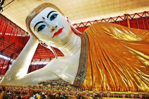 นมัสการพระพุทธไสยาสน์ชเวตาเลียว (Shew Thalyang Buddha)กราบนมัสการพระพุทธรูปนอนที่ที่ มีพุทธลักษณะที่สวยงามในแบบของมอญ ในปี พ.ศ.2524 ซึ่งเป็นที่เคารพนับถือของชาวพม่าทั่วประเทศ และเป็นพระนอนที่งดงามที่สุดของพม่าองค์พระยาว 55 เมตร สูง 16 เมตรถึงแม้จะไม่ใหญ่เท่าพระพุทธ ไสยาสน์เจ้าทัตจีที่ย่างกุ้ง แต่ก็งามกว่าโดยพระบาทจะวางเหลื่อมพระบาท เป็นลักษณะที่ไม่เหมือนกับ พระนอนของไทยนำท่านเดินทางเข้าสู่เมืองย่างกุ้ง