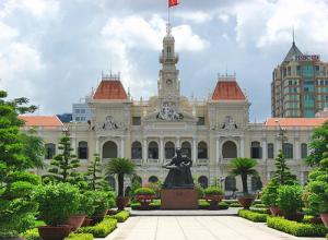 บริการอาหารกลางวัน ณ ภัตตาคาร นำท่านชมจัตุรัสโฮจิมินห์และอนุสาวรีย์ประธานาธิบดีโฮจิมินห์โบสถ์นอร์ธเธอดัมอายุกว่า100 ปี ก่อสร้างแบบNEO-ROMAN นับเป็นสถาปัตยกรรมที่สมบูรณ์แบบที่สุดแห่งหนึ่งของโฮจิมินห์ซิตี้ ชมความงดงามของสถาปัตยกรรมตะวันตกปัจจุบันใช้เป็นหอสวดมนต์สำหรับผู้ที่เป็นคริสต์ศาส นิกชนเชิญท่านถ่ายภาพไว้เป็นที่ระลึก นำท่านชมที่ทำการไปรษณีย์กลางที่มีลักษณะสถาปัตยกรรม แบบโคโลเนียลหลังจากนั้นนำท่านช้อปปิ้งที่ ตลาดเบนถันตลาดสินค้าพื้นเมืองเช่น รองเท้า คริสตัล กระเป๋า ของที่ระลึกสิ่งของเครื่องใช้ต่าง ๆ มากมาย สมควรเวลาเดินสู่ สนามบิน Tan Son Nhat