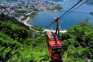 นำท่าน ขึ้นกระเช้าคาจิคาจิ เป็นกระเช้าลอยฟ้าที่ใช้เวลาเพียง 3 นาทีถึงยอดเขา จากจุดชมวิวบนความสูง 1,075 เมตร ท่านจะสามารถชมภูเขาไฟฟูจิและทิวทัศน์โดยรอบของทะเลสาบคาวากุจิในแบบพาโนรามา 360 องศา และในวันที่อากาศแจ่มใสจะสามารถมองเห็นได้ไกลถึงภูเขาแอลป์ญี่ปุ่นทางตอนใต้ (เทือกเขาอากาอิชิ และเทือกเขาอาราคาวะ) (อาจมีการงดให้บริการชั่วคราวเนื่องจากสาเหตุต่างๆ เช่น สภาพอากาศไม่เอื้ออำนวย)