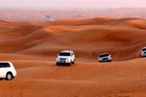 นำท่านเดินทางไปทัวร์ทะเลทราย (Dune Safari & BBQ Dinner)(อย่าลืมเส้ือแจค็เกต แว่นตากนัแดด รองเท้ำฟองนำติดตัวไปด้วย) นำท่านขึ้นรถ 4WD(รถขับเคลื่อน 4 ล้อ) ไปทัวร์ทะเลทราย ท่านจะได้สนุกสนานและตื่นเต้นไปกับประสบการณ์อันแปลกใหม่ นั่งรถตะลุยไปบนเนินทรายท้้งสูงและต่ำสลับสลับกันไป (Sand Dune)***ท่านที่เมารถ กรุณาทานยาแก้เมาล่วงหน้าอย่างน้อยครึ่งชั่วโมง หรือควรแจ้งหัวหน้าทัวร์ให้ทราบก่อนไปทัวร์ทะเลทราย ทางทัวร์จะไม่รับผิดชอบ และไม่อนุญาตให้ผู้ที่เป็นโรคหวัใจข้นัรุนแรงนงั่รถไป Dune Safari โดยเด็ดขาด *****สำหรับท่านที่ไม่ร่วมเดินทางDune Safari ท่านต้องรอคณะอยู่ที่โรงแรม โดยทางบริษัท ไม่สามรถคืนค่าทัวร์ให้ได้รวมท้งัอาหารมื้อค่ำ