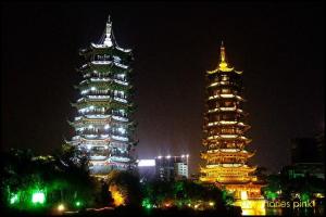 นำท่านเดินทางสู่ ริมทะเลสาบหรงซานหู ชมและถ่ายรูป เจดีย์เงินและเจดีย์ทอง เพื่อเป็นสิริมงคล เจดีย์หนึ่งสร้างด้วยทองเหลือง ถือว่าเป็นเจดีย์ทองเหลืองที่ใหญ่ที่สุดในโลก ส่วนอีกเจดีย์สร้างด้วยปูนเป็นสีเงิน (ชมด้านนอก ไม่รวมค่าขึ้นเจดดีย์) นําท่านชม ประตูโบราณกูหนานเหมิน สร้างขึ้นครั้งแรกในสมัยราชวงค์ถัง อายุโดยประมาณ 1,300 ปี ได้รับการปรับปรุงล่าสุดหลังสงครามจีนกับญี่ปุ่น ถ่ายรูปเป็นที่ระลึกและชม ต้นไทรพันปี จากนั้นนำท่านเดินทางสู่ ตลาดใต้ดิน ใจกลางเมืองกุ้ยหลินพบกับสินค้าต่างๆหลากหลายชนิด สินค้าพื้นเมืองกุ้ยหลิน ยาแก้เจ็บคอ ผลไม้กุ้ยหลินต่างๆ อาทิ ลูกพลับอบแห้ง ส้มจี๊ด เป็นต้น อิสระให้ท่านช้อปปิ้ง