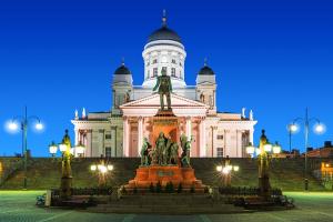 บริการอาหารมื้อเช้า ณ ห้องอาหารของโรงแรมที่พัก ชมกรุงเฮลซิงกิ นครหลวงของประเทศฟินแลนด์ ซึ่งเป็นเมืองศูนย์กลางขนบธรรมเนียม นำคณะชมรอบ กรุง “เฮงลซิงกิ” ซึ่งมีสถาปัตยกรรมแบบ ผสมผสานระหว่างสวีดิชและรัสเซีย เจ้าของสมญานาม“ธิดาสาว แห่งทะเล บอลติก” แล้วนำท่านเข้าชม “โบสถ์หินเทมเปอเลียวคิโอ” Temppeliaukio Church ที่สร้างขึ้น โดย การขุดเจาะในซอกหินแกรนิตขนาดมหึมา หากท่านได้เห็นภาพถ่า ยทางอากาศ โบสถ์หินแห่งนี้จะมี รูปร่างคล้ายจานบิน โบสถ์ซึ่งออกแบบโดยสองพี่น้องตัวโมและติโม ในปี ค.ศ.1969 มีการตกแต่งแบบ ทันสมัยพร้อมระบบเสียงที่ดี ต่อจากนั้นเยี่ยมชมวิหาร Uspensky ของศาสนาคริสต์นิกายออร์ธอดอกซ์ ที่งดงามด้วยลักษณะสถาปัตยกรรมแบบรัสเซีย จากนั้นพาชม “จัตุรัสรัฐสภา” Senate Square ซึ่งเป็น ที่ตั้งของอนุสาวรีย์พระเจ้าอเล็กซานเดอร์และมหาวิหารใหญ่นิกายรูเธอรัน