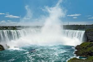 บริการอาหารเช้า ณ ห้องอาหารของโรงแรม นำท่านออกเดินทางสู่ อุทยานแห่งชาติไนแองการ่า ฝั่งอเมริกาา ที่ถือว่าเป็นสิ่งมหัศจรรย์ทางธรรมชาติ สิ่งหนึ่งของโลก และเป็นสถานที่ดื่มน้ำผึ้งพระจันทร์ยอดนิยมสูงสุด 1 ใน 3 ของคู่บ่าวสาวชาวอเมริกัน น้ำตกไนแองการ่าเกิดจากบริมาณน้ำ ที่ไหลมาจากทะเลสาบทั้ง 5 และเป็นพรมแ ดนระหว่างประเทศ สหรัฐอเมริกากับประเทศแคนาดา น้ำตกไนแอการาประกอบด้วยน้ำตกสามแห่งที่แยกออกจากกัน คือ น้ำตกเกือกม้า (Horseshoe Falls บางครั้งก็เรียก น้ำตกแคนาดา) สูง 158 ฟุต, น้ำตกอเมริกาสูง 167 ฟุต, และน้ำตกขนาดเล็กกว่าที่อยู่ติดกัน คือน้ำตก Bridal Veil