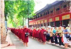 นำชม \"วัดมหากันดายงค์\"(Mahagandaryon Monastry) ซึ่งเป็นวัดใหญ่ที่สุดของพม่าที่เมืองอมรปุระ ซึ่งในช่วงเพลจะมีภิกษุสงฆ์นับร้อยรูปเดินเรียงแถวด้วยอาการสำรวมเพื่อรับอาหาร วิทยาลัยสงฆ์แห่งนี้เป็น สถานที่ศึกษาพระธรรมและรักษาพระธรรมวินัยมากที่สุด ด้วยวัตรปฏิบัติอันงดงามของภิกษุสงฆ์ในวัดมหากันดายงค์ ทำให้มีชาวพม่าจำนวนมากส่งบุตรหลานมาศึกษาพุทธศาสนากันที่นี่