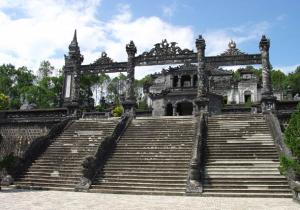 นำท่านชม สุสานกษัตริย์ไคดิงห์สุสานแห่งนี้เป็นเพียงสุสานเดียวที่มีการผสมผสาน ระหว่างสถาปัตยกรรมตะวันออกเข้ากับสถาปัตยกรรมตะวันตก ทางเดินขึ้นสุสานได้รับ การตกแต่งเป็นบันไดมังกรอันโอ่อ่า
