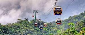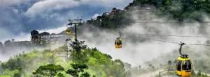 นั่งกระเช้าขึ้นสู่บานาฮิลล์กระเช้าแห่งบานาฮิลล์นี้ได้รับการบันทึกสถิติโลกโดย World Record ว่าเป็นกระเช้าไฟฟ้าที่ยาวที่สุดประเภทNon Stopโดยไม่หยุดแวะ มีความยาวทั้งสิ้น 5,042 เมตรและเป็นกระเช้าที่สูงที่สุดที่ 1,294 เมตรนักท่อง เที่ยวจะได้สัมผัสปุยเมฆหมอกและบางจุดมีเมฆลอยต่ำกว่ากระเช้าพร้อมอากาศ บริสุทธิ์อันสดชื่นจนทำให้ท่านอาจลืมไปเสียด้วยซ้ำว่าที่นี่ไม่ใช่ยุโรปเพราะอากาศ ที่หนาวเย็นเฉลี่ยตลอดทั้งปีประมาณ 10 องศาเท่านั้นจุดที่สูงที่สุดของบานาฮิลล์มี ความสูง 1,467 เมตรกับสภาพผืนป่าที่อุดมสมบูรณ์